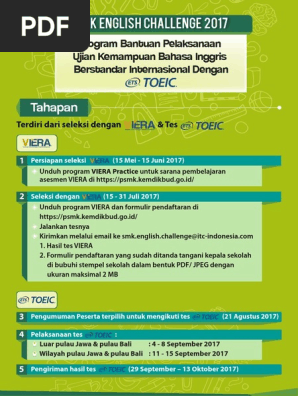 Tes Toeic Viera Selection 2020 Smkn 1 Cileungsi from smkn1cileungsi.sch.id Check spelling or type a new query. Maybe you would like to learn more about one of these? We did not find results for: